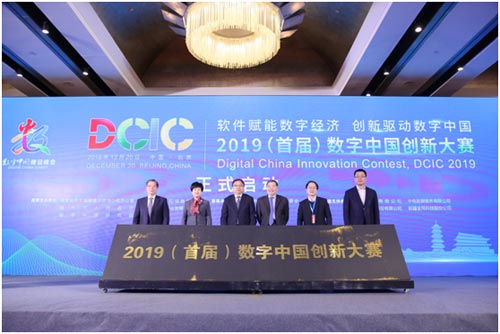 大会现场,数字中国建设峰会高端专业核心赛事——2019(首届)数字中国创新大赛重磅启动,北京大学教授暨工业和信息化部原副部长杨学山、工业和信息化部信息化和软件服务司司长谢少锋、福建省数字福建建设领导小组办公室主任陈荣辉、福州市人民政府副市长李春、中国电子信息产业发展研究院院长卢山、数字中国研究院高级顾问何昌垂参加启动仪式。
