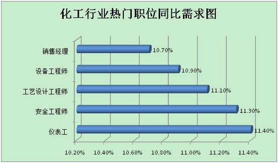 化工英才网的招聘顾问表示,化工能源行业的稳定发展带动化工行业的人才需求上涨,黄河经济带地区的能源项目也在有序运行,像化工设备类、操作类、销售类职位的人才需求缺口还会持续一段时间。